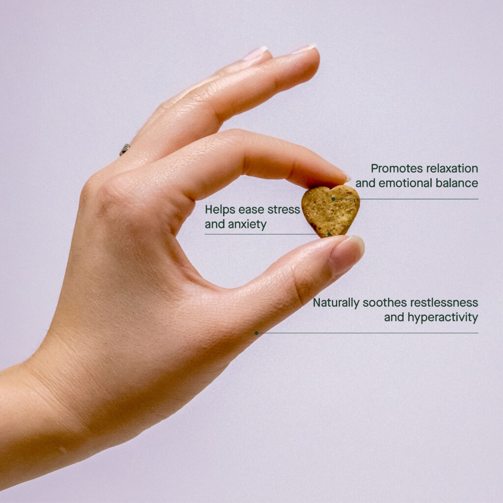 Alleviate Stress relaxes their body’s stress response to help pacify anxiety and stress triggers  Uplift Mood naturally increases GABA and dopamine levels to help your pet feel at peace  Soothe Hyperactivity relaxes muscles and overly excited behaviour with balanced energy